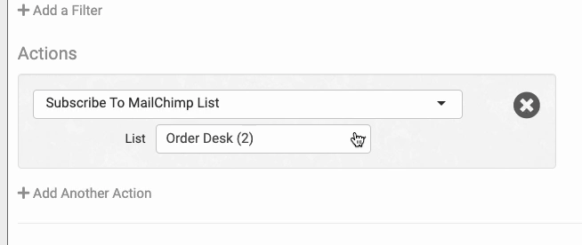 Use this action to select which Mailchimp list you’d like orders to be unsubscribed from to as they import.