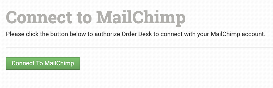 Click the Connect To Mailchimp button and login to your Mailchimp account to give Order Desk access to it. If you have multiple accounts, select the account you want Order Desk to connect to.