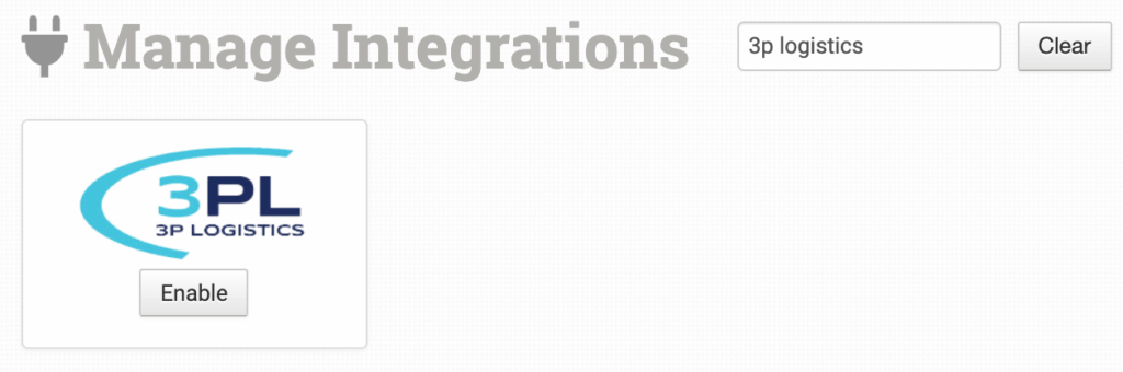 To connect your 3P Logistics account to Order Desk, click on Manage Integrations under the Integrations menu in the left sidebar. Under the Fulfillment tab, find and enable 3P Logistics.