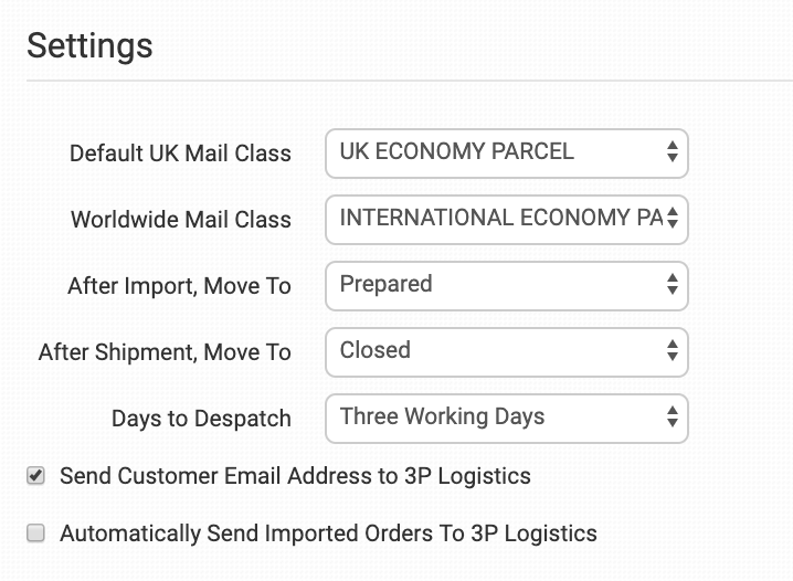 Choose the default mail classes you want 3P Logistics to use for your orders.