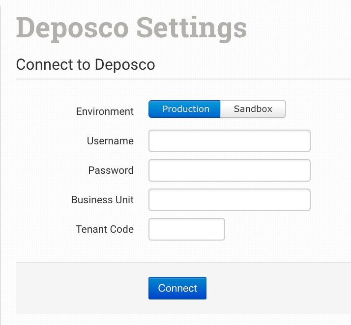 Enter your Deposco credentials and select your environment. Click Connect to enable the integration.