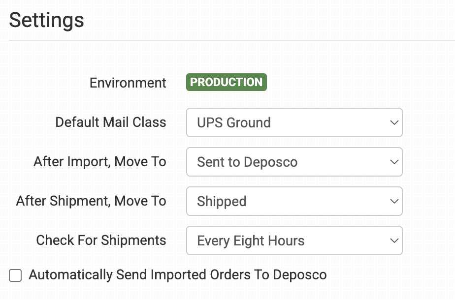If selected, every order that is added to Order Desk will automatically be sent to Deposco.