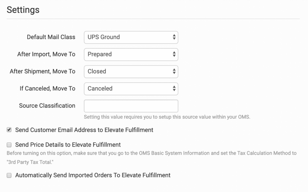 Set this value only if Elevate Fulfillment tells you to. This also requires you to set this value up within your OMS or it will fail.