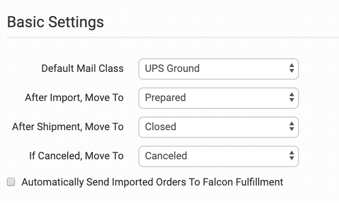 If you plan to automatically submit every order to Falcon for fulfillment, you can enable this setting. All orders will be sent as they come in to Order Desk.