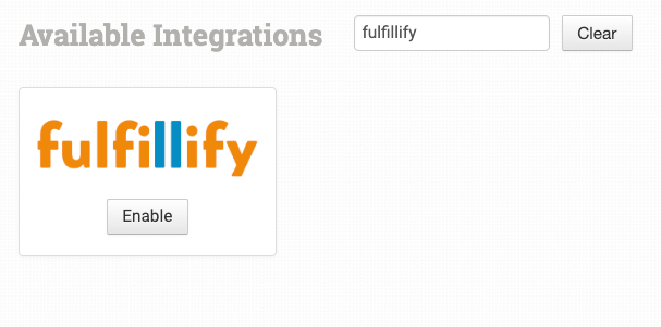 To connect to Fulfillify, click on the Manage Integrations link in the left sidebar and under the Fulfillment tab find and enable the Fulfillify integration.
