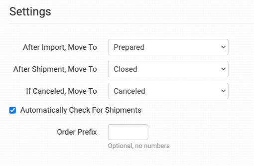 If you need to add a prefix to your orders as they are downloaded to Order Desk, set that here.