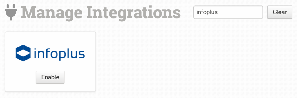 Alternatively, search for Infoplus from the available integration search.