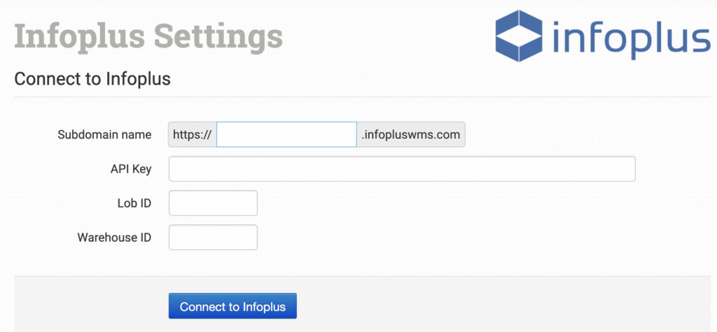 In the integration page, add your Infoplus credentials to connect.