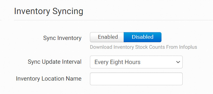 If Sync Inventory is enabled, select the interval you would like Order Desk to pull in inventory updates from Infoplus.
