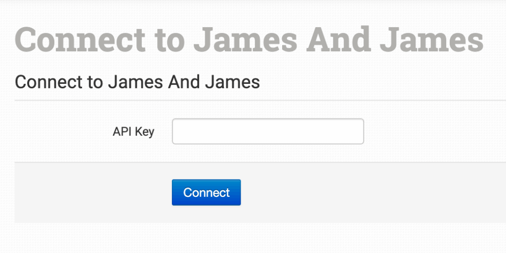 On the setup page, add your James and James API key to connect.