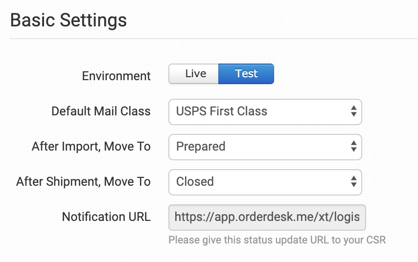 If you skipped this step when connecting the integration, give this webhook Notification URL to your Logistech customer service representative. This is necessary for Logistech to be able to send shipment notifications back into your orders in Order Desk.