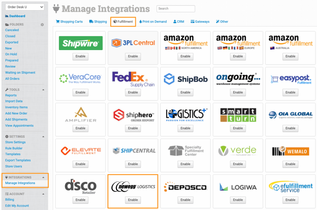 Order Desk can send orders directly to Newegg Logistics then pull shipment details back into your orders here and send them to your shopping carts, if applicable.