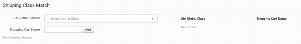 To tell OIA Global what methods you want them to use, you will need to match your method names to theirs. This can be done in the shipping class match section. For detailed instructions on setting this up, please read through the shipping class match guide.