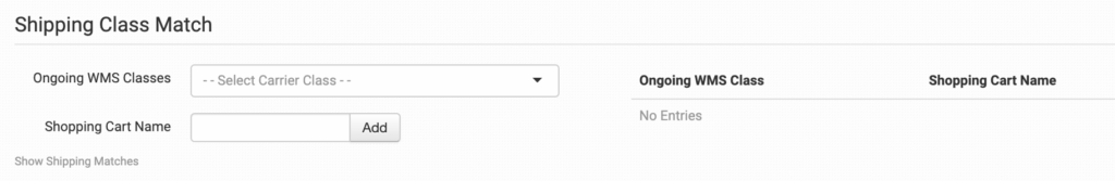 To tell Ongoing WMS what methods you want them to use, you will need to match your method names to theirs. This can be done in the shipping class match section. For detailed instructions on setting this up, please read through the shipping class match guide.