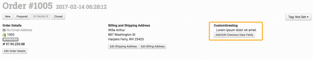 If you need to send special instructions or messages with your orders to Red Stag Fulfillment, these fields can be set on a per order basis as either checkout data or metadata values.