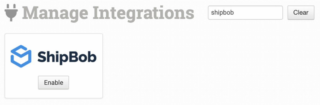 To connect to ShipBob, click on the Manage Integrations link in the left sidebar and under the Fulfillment tab find and enable the ShipBob integration.