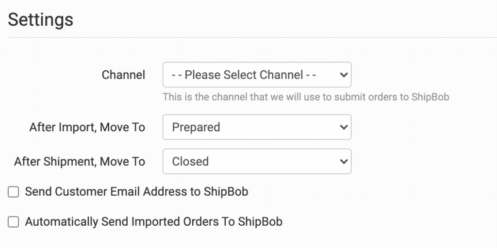 Select this setting only if all orders will be sent to ShipBob. If any orders will not be sent, or if you need a delay between when an order is imported into Order Desk and when it is sent to ShipBob do not select this.