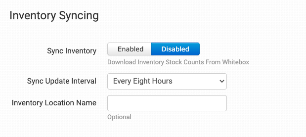 If Sync Inventory is enabled, select the interval you would like Order Desk to pull in inventory updates from Whitebox.