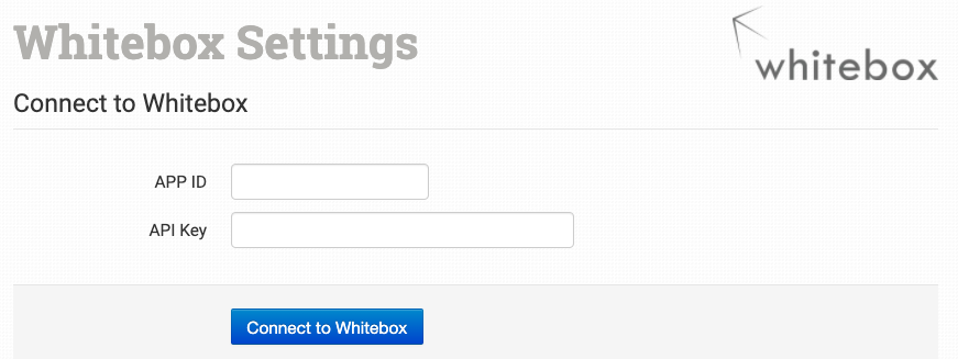 On the integration page, add your APP ID and API Key to connect to Whitebox.