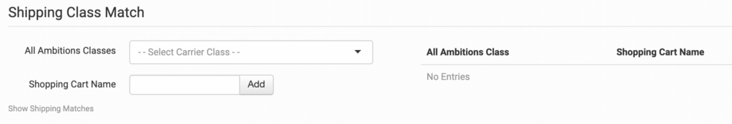 The shipping methods that you have set up in your shopping cart(s) may not match the methods that All Ambitions uses. To make sure your shipping preferences are sent through to All Ambitions with each order, match your methods to theirs in the shipping class match feature.