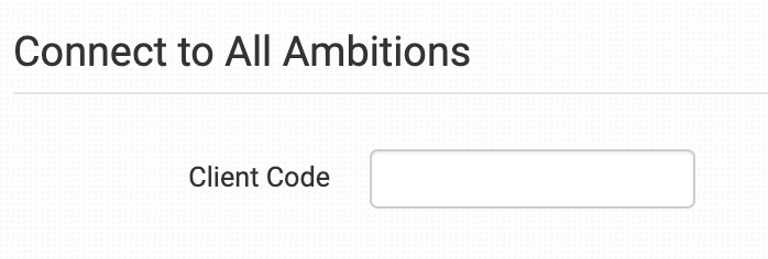 Enter your Client Code from All Ambitions and click to connect.