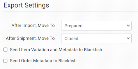 Check this option to send item variation and metadata to Blackfish with your orders.