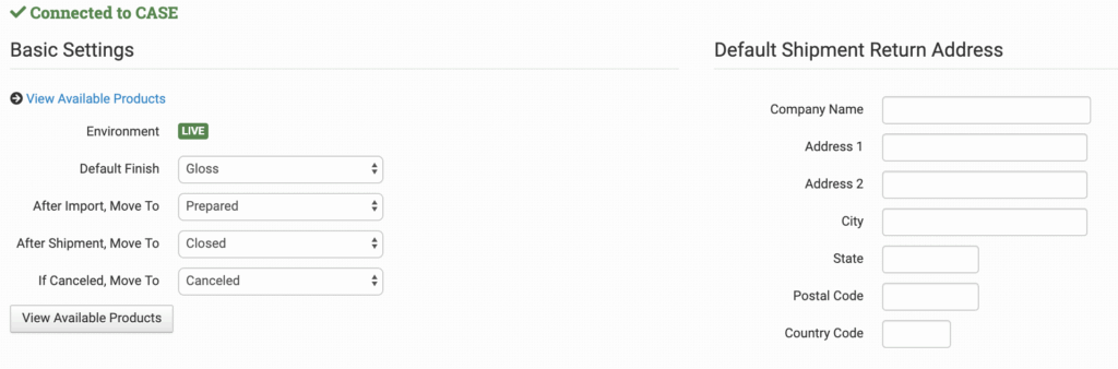 For more information on what these product settings within the CASE integration are for, please refer to the Print on Demand Product Settings guide.