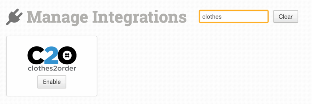 Alternatively, search for Clothes2order from the available integrations search: