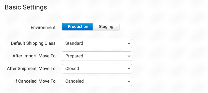 Select the environment the store should be in: Production for live or Staging for test.