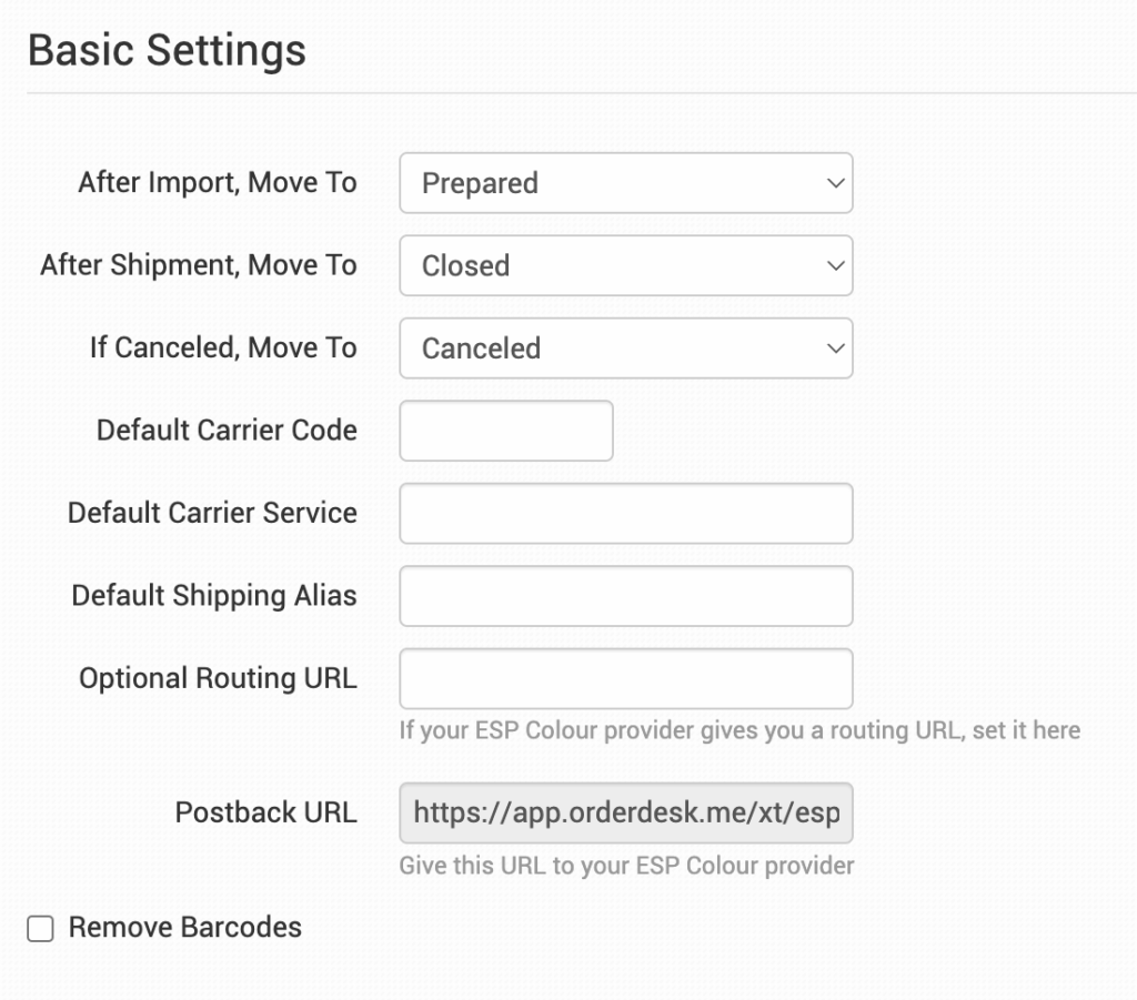 If there are barcodes on your order that don’t need to be submitted to your printer, select this option to remove barcodes from orders before they are sent to ESP Colour.