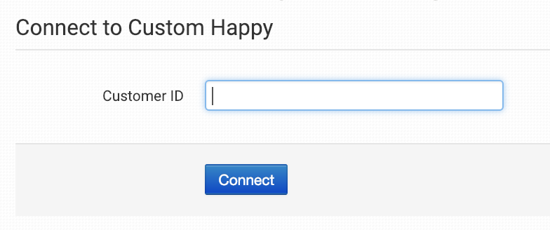 Enter the Customer ID provided to you by CustomHappy and click to connect.