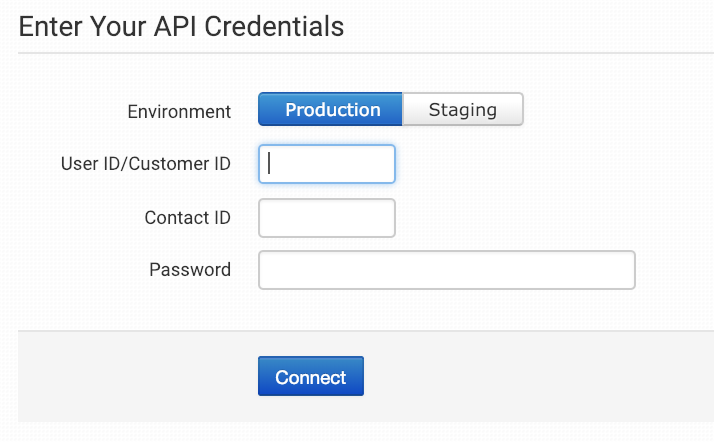 Enter the API credentials Dubow provides you with and then click to connect.