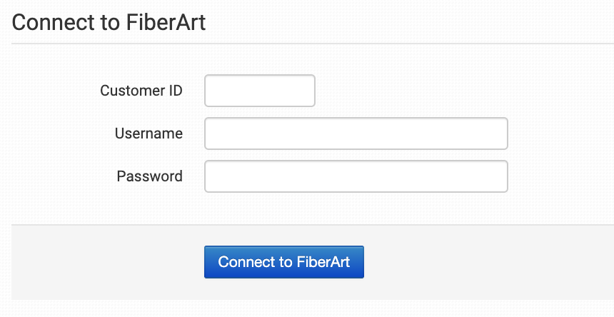 Enter the credentials supplied to you by FiberArt and click to connect.