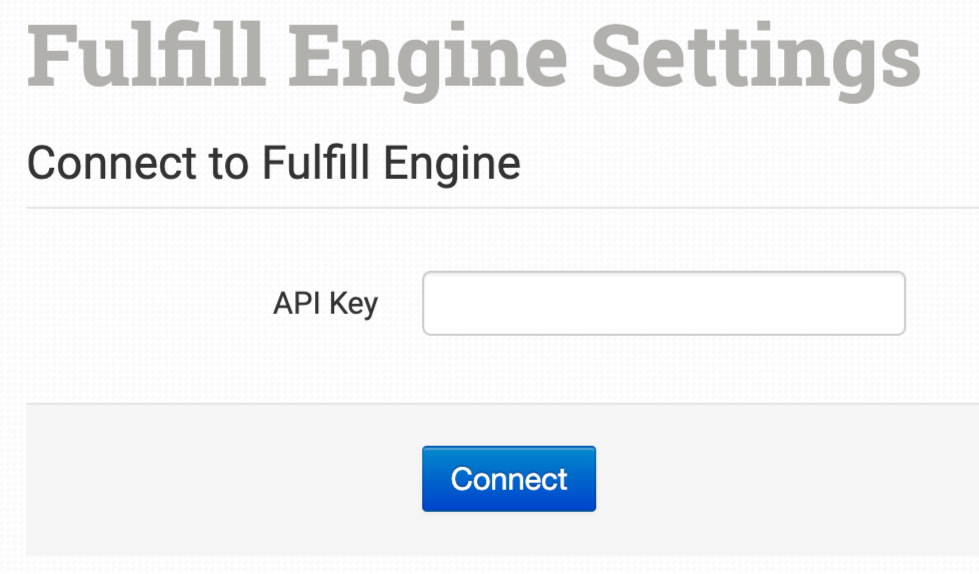 Once enabled, enter your Fulfill Engine API Key and click to connect.