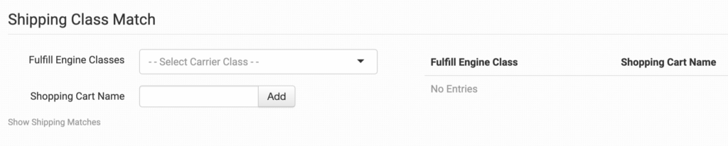 The shipping methods that you have set up in your shopping cart(s) may not match the methods that Fulfill Engine uses. To make sure your shipping preferences are sent through to Fulfill Engine with each order, match your methods to theirs in the shipping class match feature. If matches aren’t made, Fulfill Engine will use your default preferences set above.