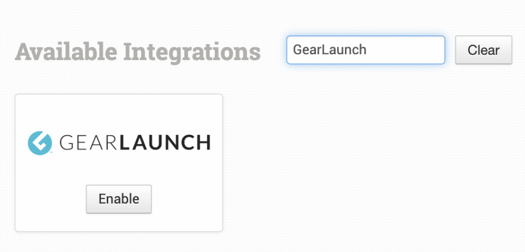 To connect to GearLaunch, click on Manage Integrations in the left sidebar. Under the Print on Demand tab, find and click to enable the GearLaunch integration.