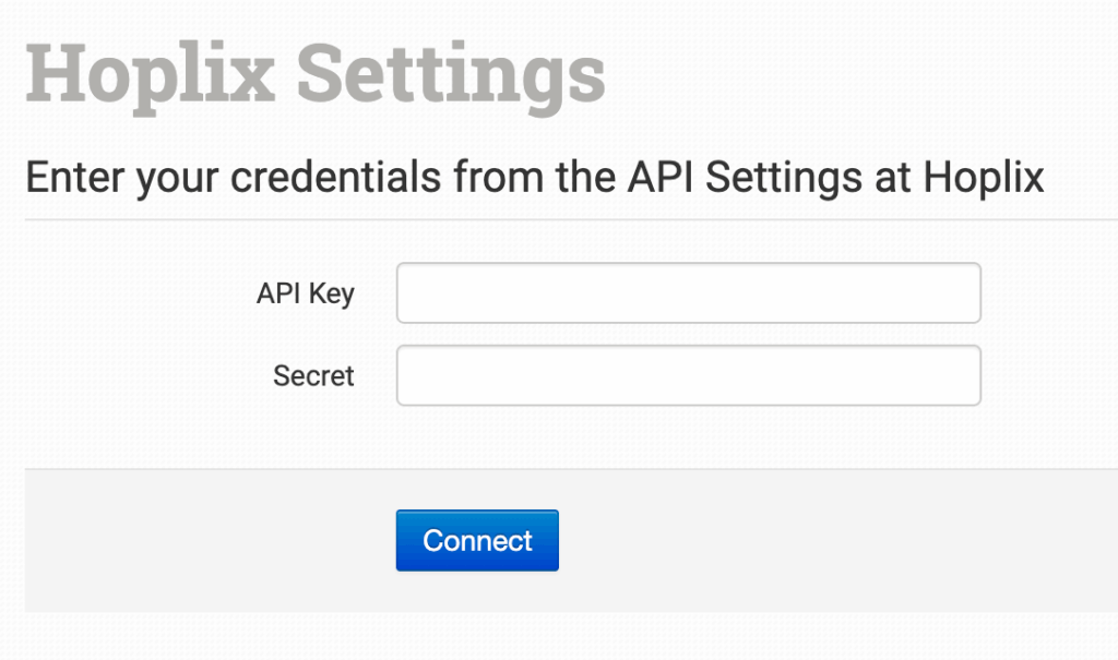 Once enabled, enter your Hoplix API Key and Secret then click to connect.