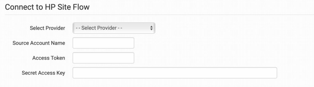 Select your print provider and enter your HP Site Flow account credentials then connect.