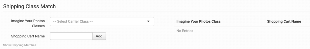 To tell Imagine Your Photos what methods you want them to use, you will need to match your method names to theirs. This can be done in the shipping class match section. For detailed instructions on setting this up, please read through the shipping class match guide.