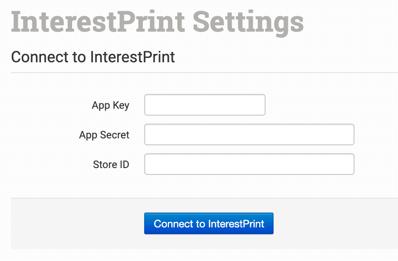 Enter your App Key, App Secret and Store ID from InterestPrint and click to connect.