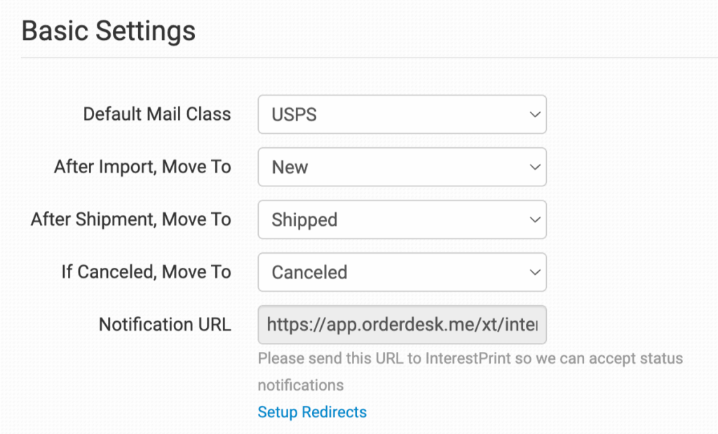 To tell InterestPrint what methods you want them to use, you will need to match your method names to theirs. This can be done in the shipping class match section. For detailed instructions on setting this up, please read through the shipping class match guide.