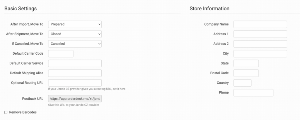 When you receive your API connection details from JONDO, enter them in Order Desk.