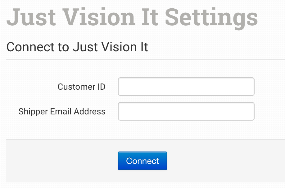 Add your signup requirement details, which will be provided to you by Just Vision It, and click to connect.