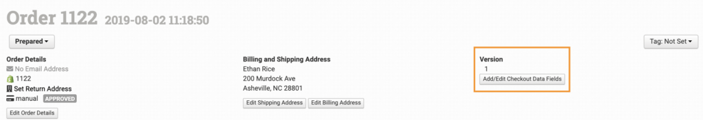 Checkout data is added in the top right corner of the order details page: