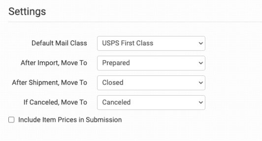 Once connected, you’ll have some shipment and integration settings to adjust per your preferences.