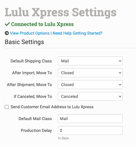 For more information on what the product settings within the Lulu Xpress integration do, please read the Print on Demand Product Settings guide.
