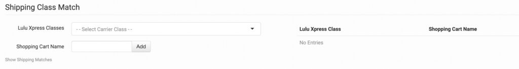To tell Lulu Xpress what methods you want them to use, you will need to match your method names to theirs. This can be done in the shipping class match section. For detailed instructions on setting this up, please read through the shipping class match guide.