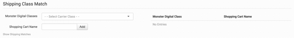 To tell Monster Digital what methods you want them to use, you will need to match your method names to theirs. This can be done in the shipping class match section. For detailed instructions on setting this up, please read through the shipping class match guide.