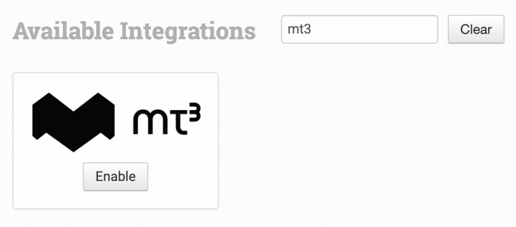 To enable the integration, click on Manage Integrations in the left sidebar. Under the Print on Demand tab, find and enable the MT3 integration.