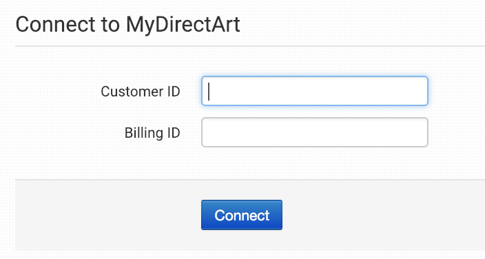 Once enabled, enter your My Direct Art Customer and Billing ID and click to connect.